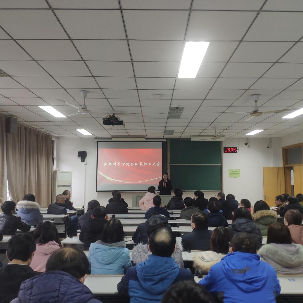 2月19日下午,我院2022年春季学期开学全体教职工大会暨2021年度表彰大会在博学楼305举行。大会由党委书记战昕主持。全体教职员…[详细]