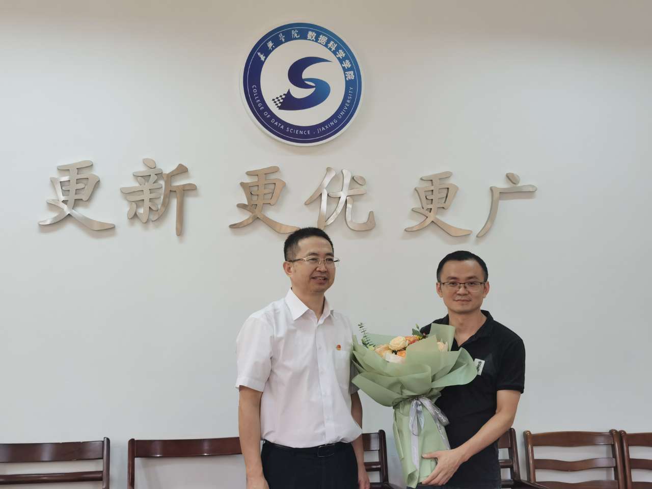 陈新友首先看望和慰问了学院2021年入选首批“创新嘉兴·优才支持计划”之科技创新拔尖人才计划的谭中权教授,陈书记关切地询问谭教授的工作生活情况和研究领域方向,并代表学校送出诚挚的教师节问候。同时,陈书记对学院的发展情况和面临的问题也做了详尽的了解,鼓励学院在嘉兴奋力推动高质量发展建设共同富裕示范区的典范城市中发挥人才作用、做好人才服务。