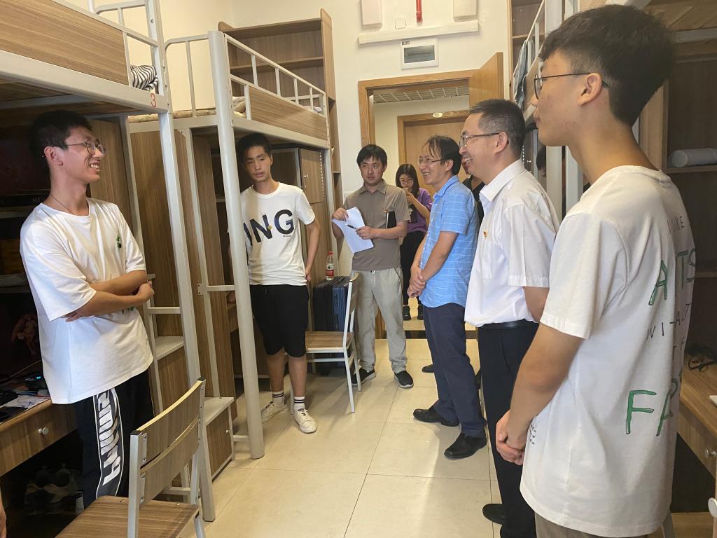 随后,陈新友在学院班子的陪同下,走访了新生寝室。他与刚刚来报到的新生亲切交谈,勉励学子们尽快适应大学生活,树立学习目标,实现自身价值。