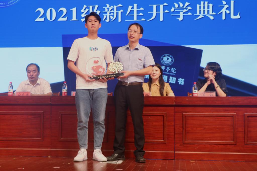 典礼开始,教师代表、新生班主任孙明瑞老师从自身成长经历出发,从理想信念、实践锻炼、学业深造三个方面勉励同学们积极向上、奋发图强,保持良好的情绪、健康的体魄、积极的态度和乐观的心态,在大学四年学有所成、成为一名优秀的大学生。老生代表、统计191班孙雨佳希望学弟学妹们珍惜宝贵的青春年华,坚持理想,脚踏实地,勤于学习、善于学习,打牢知识功底、积蓄前进能量,勇于探索、勇于突破。新生代表、大数据211班朱城表示自己将秉承“方正为人、勤慎治学”的校训,努力学习、加强本领,成为眼里有光,心里“有数”的新一代大学生。