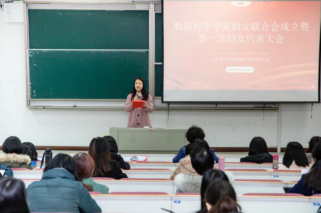 12月16日,嘉兴学院AC米兰中国官网妇委会成立暨第一次妇女代表大会在博闻楼报告厅隆重举行。学院党委书记战昕、副院长吴艳出席开幕式。大会由学院学生工作办公室主任、分团委书记方雨禾主持。