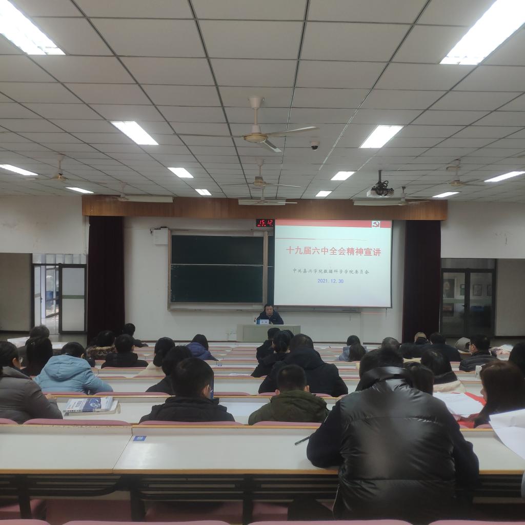 12月30日下午,AC米兰中国官网“深入学习贯彻党的十九届六中全会精神”专题报告会在博闻楼报告厅举行,嘉兴学院马克思主义学院教授马赛应邀作了“党的十九届六中全会精神解读”的专题报告。学院党委副书记李寒星主持报告会,学院全体教工党员参加报告会。