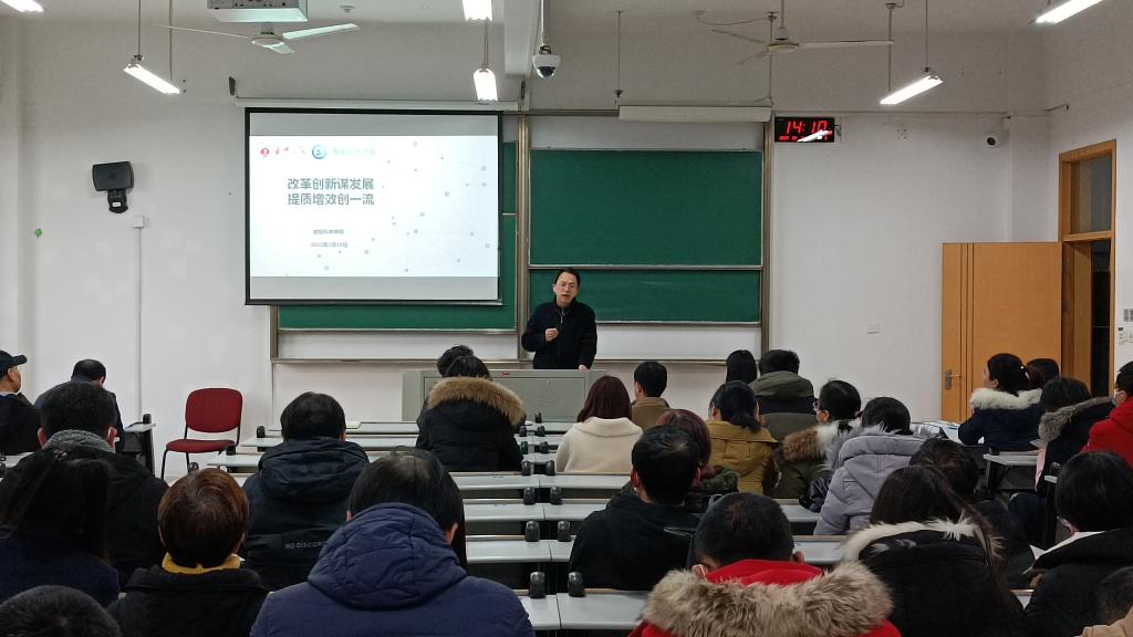 随后,院长张景军代表学院全面总结了学院2021年的工作和考核情况,细致解读了学院2022年度工作目标和重点工作内容,号召全体教职员工“改革创新谋发展,提质增效创一流”。