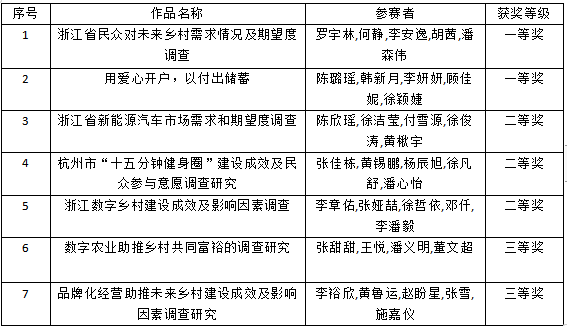 日前,浙江省“民生民意杯”第十一届大学生统计调查方案设计大赛在浙江理工大学落下帷幕。我校学子斩获一等奖2项、二等奖3项、三等奖2项,取得了我校在该项赛事的最好成绩。