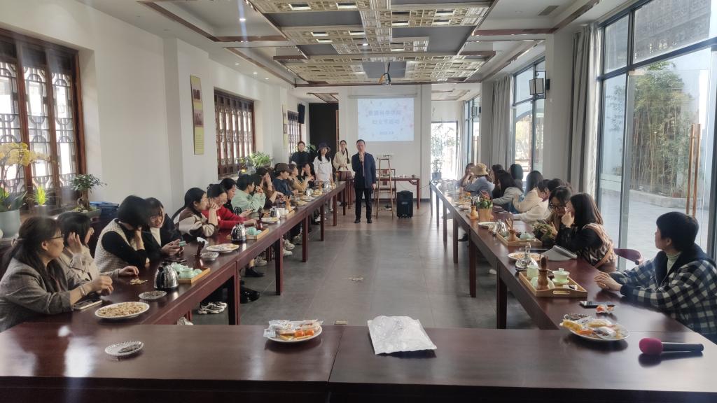 3月9日下午,我院女教职工齐聚梅花洲茶艺馆,由国家一级茶艺师为大家讲解茶文化、茶礼仪等知识,并演示烫杯、拨茶、高冲、盖沫、奉茶等一系列茶艺技巧,在场女教职工跃跃欲试,品茗香学礼仪,脸上洋溢着幸福的微笑。