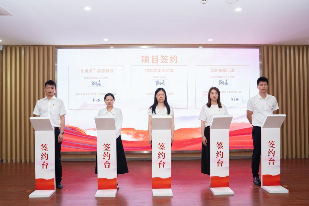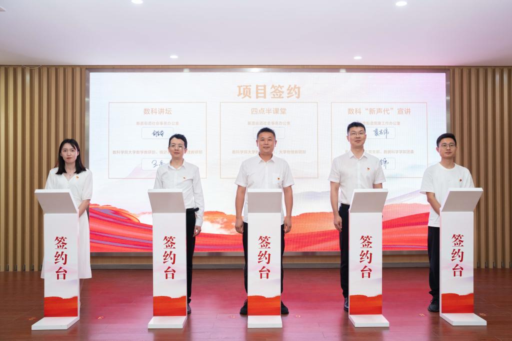 活动上,王玮、战昕分别介绍了院地发展现状和党建特色优势,紧紧围绕党建创新、志愿服务、社会治理等方面进行了总结,回顾了六年来院地党建联建合作的成果与经验,对下一阶段即将开启的合作进行了展望。随后院地双方签订了新一轮党建联建协议;同时为数科“新声代”宣讲团、“春苗夏花”志愿服务队、“同心振乡”志愿服务队授旗,三支志愿服务队代表进行了庄严宣誓;最后双方共同启动红七月·益嘉行暨AC米兰中国官网暑期社会实践活动。
