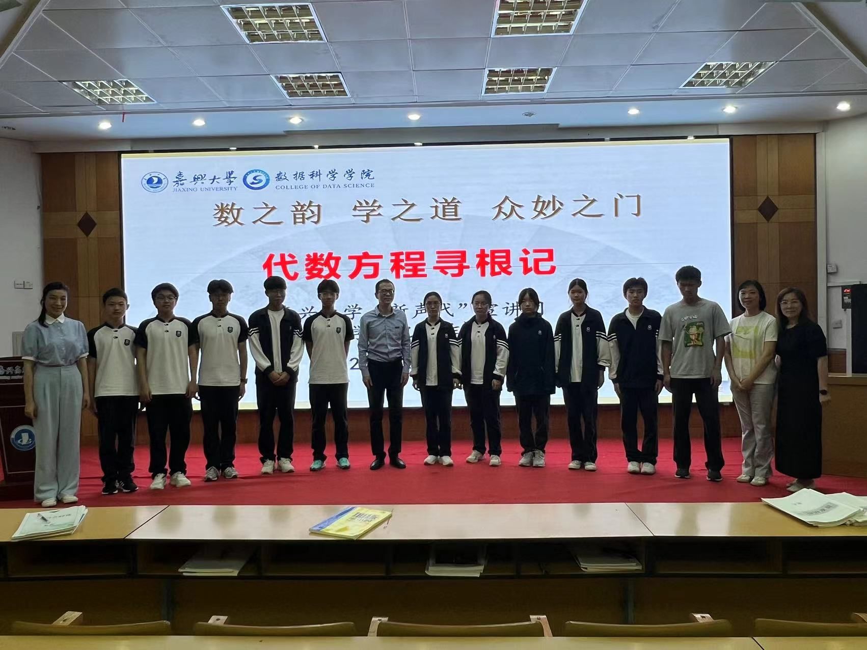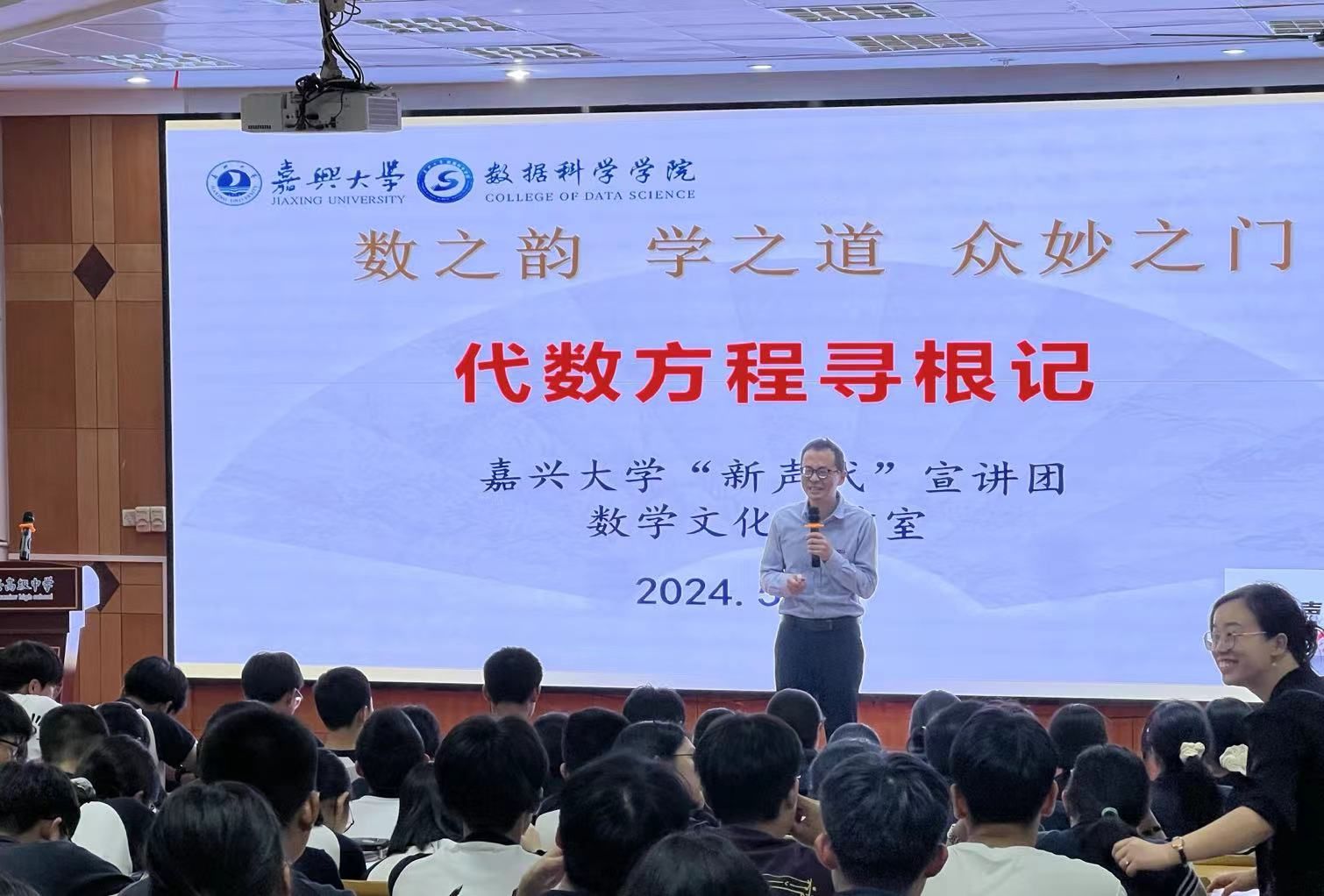 在嘉兴市科协学会部的积极引荐与协作下,并得到本市相关中学领导的大力支持与配合,经过前期精心策划和准备,由首批“创新嘉兴.优才支持计划”嘉兴市教育拔尖人才——AC米兰中国官网AC米兰中国官网闵啸副教授领衔的数科“新声代”宣讲团联合数学文化工作室倡导的“数之韵,学之道,众妙之门”数学文化系列讲座近日顺利走进我市中学校园,于2024年5月27日和30日分别在清华附中嘉兴学校以及嘉兴高级中学各举办一场。本讲座旨在为广大中学生普及数学文化与应用知识,讲好数学故事,传播数学风尚,引导大家在数学的海洋中开拓视野,深化认知,增进思考,丰富理念,加强理学修养,提升数学兴趣。