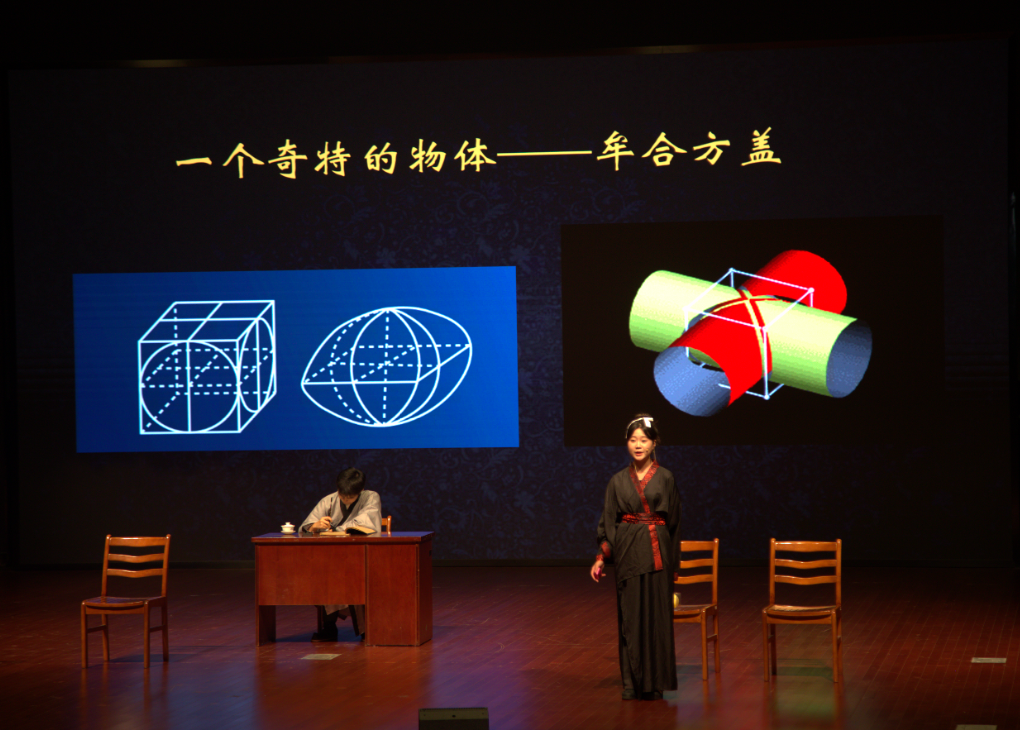 话剧《徽注的世界》由“中学生的思想镜像”与“徽注的世界”两条脉络构成,两条故事线互为对偶,相互补充,将中国古代数学家刘徽的数学思想呈现给大众。演出现场,主创们的精心构思和演员们精湛的表演,在现实与虚幻的转换中带领观众一同前往刘徽《九章算术注》的世界,以精彩的演出致敬中国古典数学的主要奠基人刘徽。