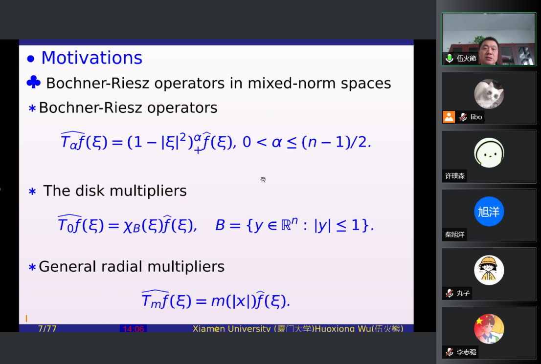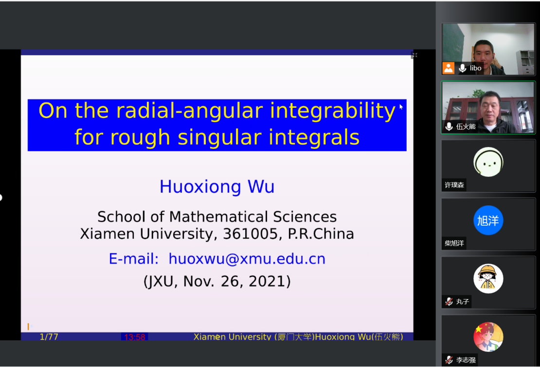 2021年11月26日, 应AC米兰中国官网邀请, 厦门大学数学科学学院博士生导师、伍火熊教授应邀来我院进行学术交流(线上)。讲座由AC米兰中国官网李波老师主持,学院部分老师、本科生和研究生参加了讲座。