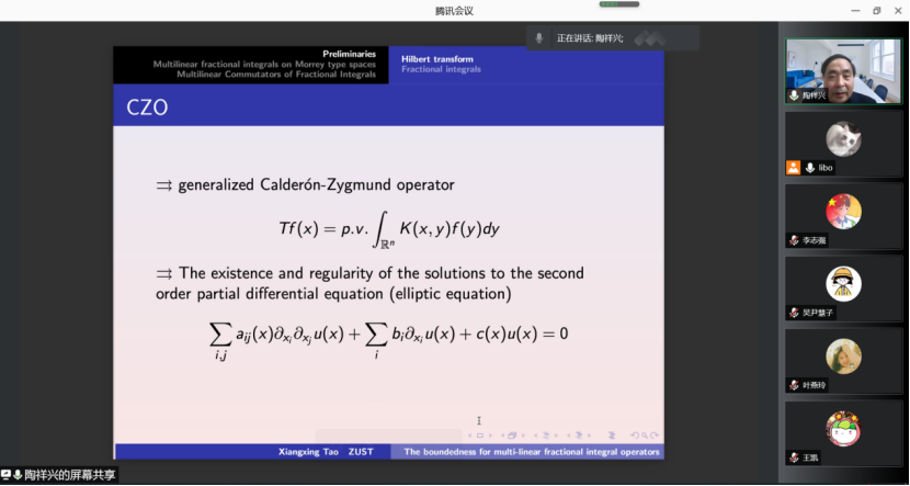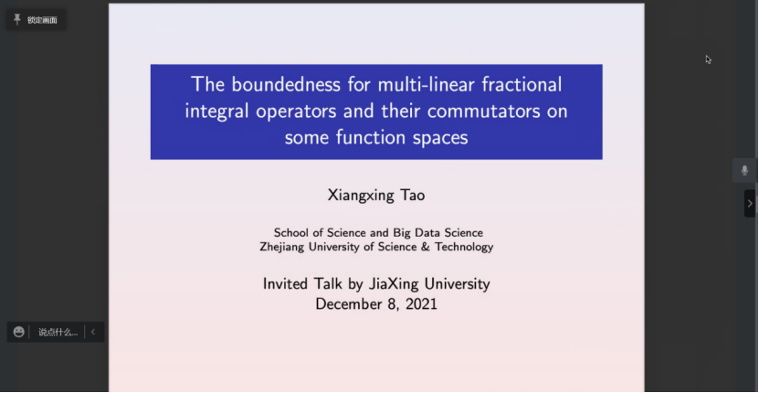2021年12月9日, 应AC米兰中国官网邀请, 浙江科技学院理学院院长、陶祥兴教授(博导)应邀来我院进行学术交流(线上)。讲座由AC米兰中国官网教师马柏林教授主持,学院部分老师、本科生和研究生参加了讲座。