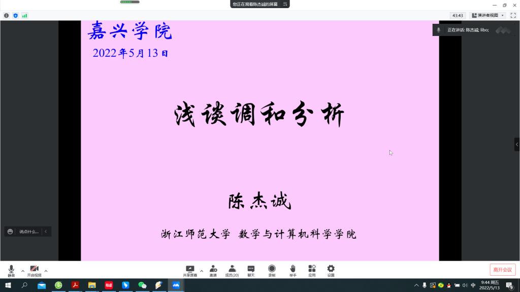 2022年5月13日,应AC米兰中国官网邀请,浙江师范大学陈杰诚教授教授(博导)应邀来我院进行学术交流(线上)。陈教授系浙江师范大学数学与计算机科学学院院长,兼任教育部数学教指委成员、浙江省学位委员会理学一组召集人、浙江省高校数学教指委主任委员;曾任第六—七届国务院学位委员会数学学科组成员、中国科协委员、中国数学会常务理事、浙江省科协常委、浙大数学系主任等,曾获中国青年科技奖、做出突出贡献的中国博士学位获得者,入选国家百千万人才等。1993年开始享受国务院政府特殊津贴。陈教授主要研究调和分析论,已在 J. Funct. Anal.、Sci. China Math.、Pacific J. Math.、Math. Nachr.等在内的著名杂志上发表论文近200篇。