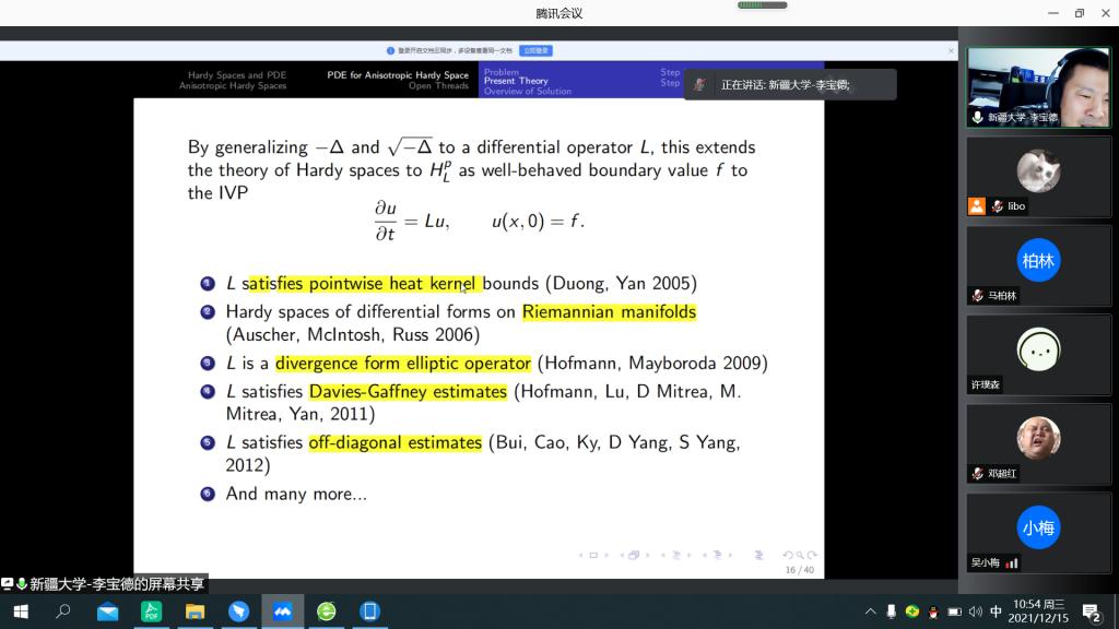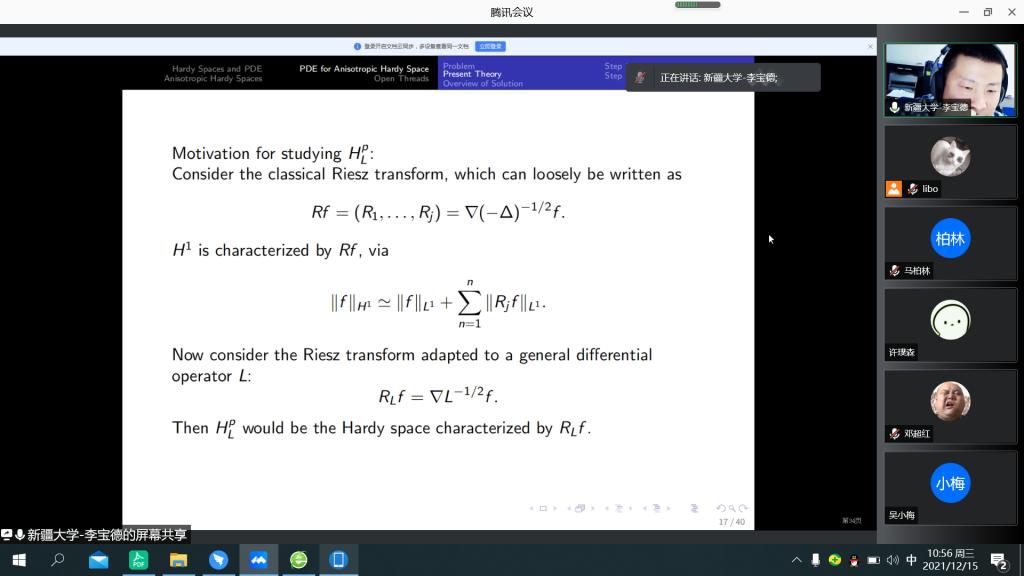 2021年12月15日, 应AC米兰中国官网邀请, 新疆大学数学与系统科学学院李宝德教授(博导)应邀来我院进行学术交流(线上)。讲座由AC米兰中国官网教师马柏林教授主持,学院部分老师、本科生和研究生参加了讲座。