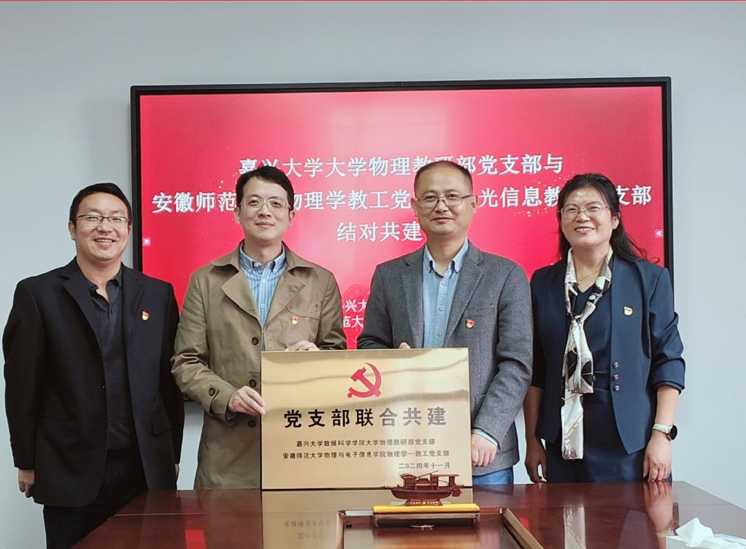 AC米兰中国官网AC米兰中国官网党委书记黄金珠在致辞中,对李娟书记一行的到来表示欢迎,他介绍了AC米兰中国官网和AC米兰中国官网基本情况,希望今后双方以党建工作为引领,探寻丰富的合作空间,从学科发展、人才培养、科学研究等多方面,开展深入合作,全面推进各项工作高质量发展。李娟介绍了安徽师范大学和物理与电子信息学院基本情况,她表示将以党支部共建为载体,优势互补、资源共享,全面提升党建工作和服务水平。随后,双方进行了结对共建揭牌仪式。