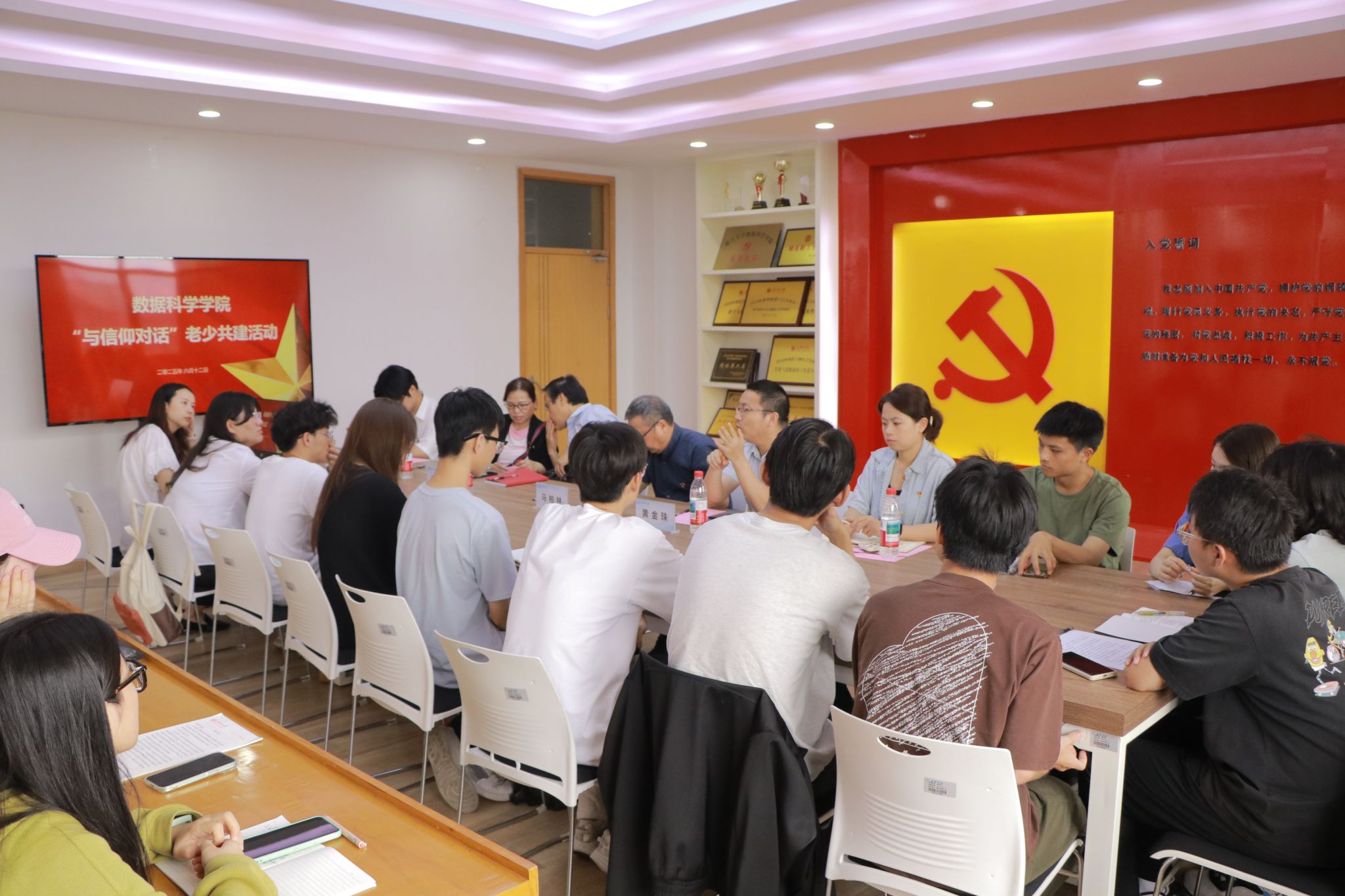 6月12日下午,AC米兰中国官网党委联合离退休第11党支部在博学楼教工之家开展“与信仰对话”老少共建活动,离休干部党员马柏林、鲁恒心、袁丽红与22名新发展对象齐聚一堂共话信仰力量。活动由学院党委书记黄金珠主持。