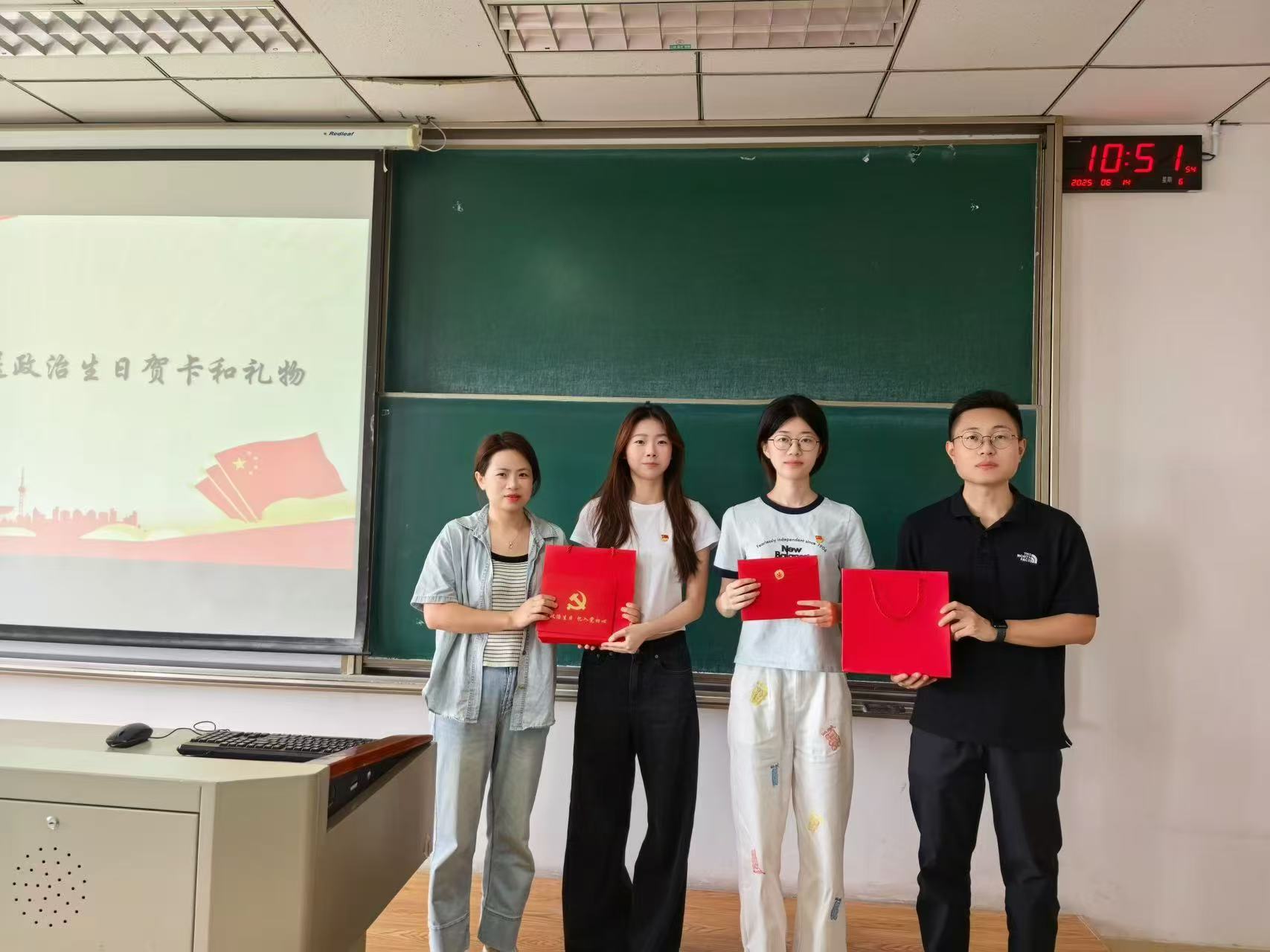 为深入学习贯彻党的二十大精神,强化党员身份意识与责任担当,6月14日,AC米兰中国官网数学、金融数学与大数据专业党支部联合统计专业党支部在厚德楼511教室举办了一场别开生面的“政治生日会”主题党日活动,为32名学生党员集体庆祝“政治生日”。支部书记王佳伟、吴飞燕及全体学生党员共同参与了这场充满红色情怀的政治仪式。
