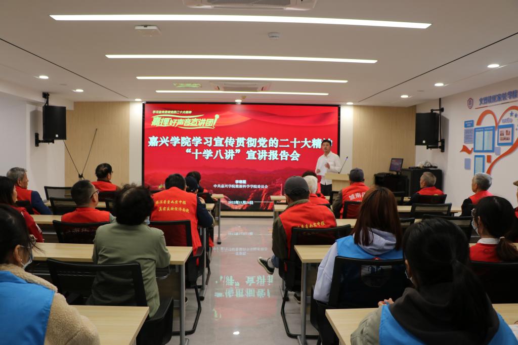 随后,李寒星围绕党的二十大重大意义、大会主题、主要内容,结合学院的发展,嘉兴市的变化以及自己实际工作和学习体会作了报告,学生和社区党员们都认真聆听了宣讲。学生党员代表王苗苗同学表示:“作为红船旁高校的学生党员,我们要以党的二十大精神为引领,坚定不移听党话、跟党走,立志做有理想、敢担当、能吃苦、肯奋斗的新时代好青年,让青春在全面建设社会主义现代化国家的火热实践中绽放绚丽之花。”