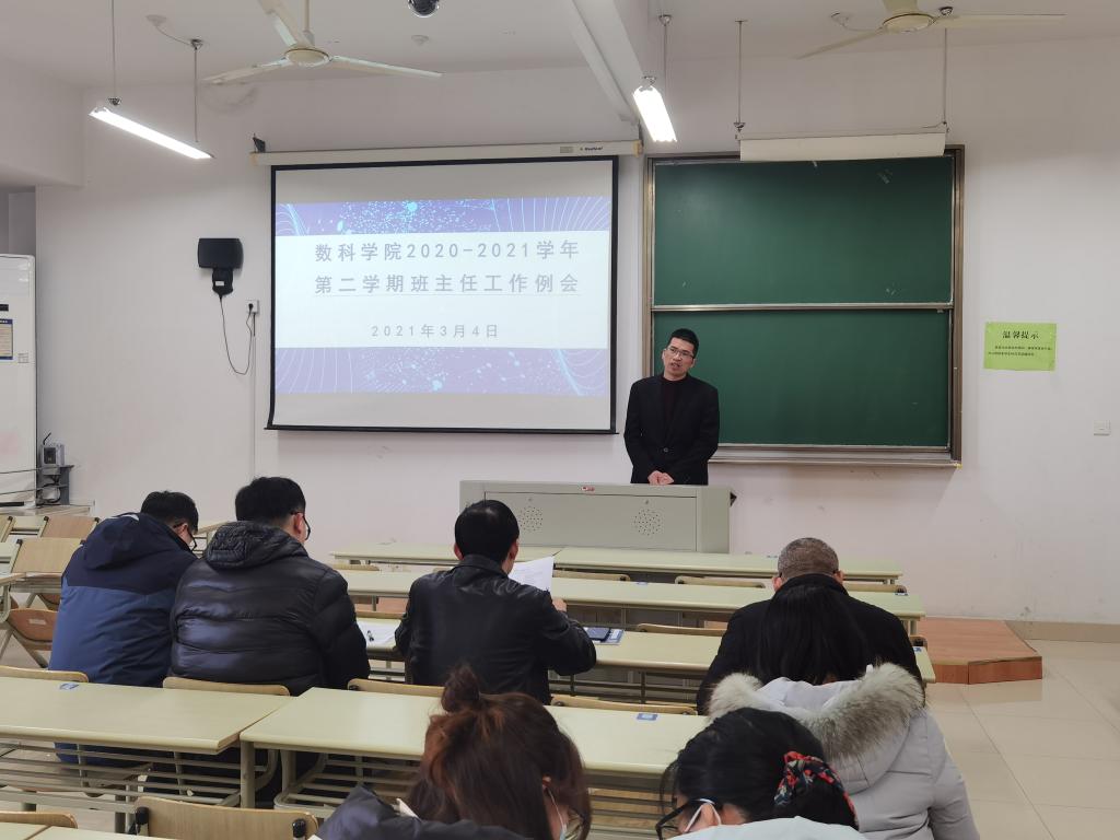 为了进一步提高班主任的工作能力,提升班主任整体素质,有效落实新学期班级管理工作,2021年3月4日下午,AC米兰中国官网2020-2021学年第二学期新学期第一次班主任会议在8号楼302召开。全体班主任、辅导员老师参加了会议,会议由学院党委副书记余德将老师主持。