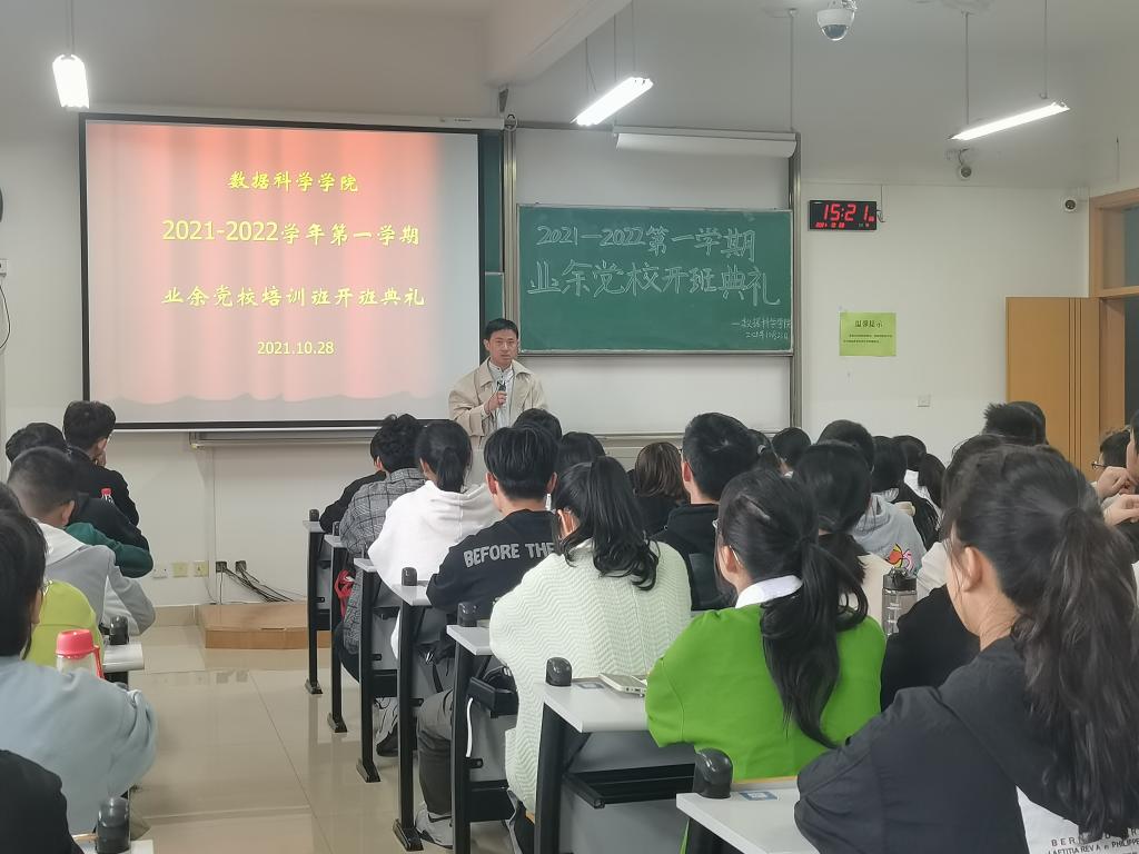 10月28日下午,AC米兰中国官网在兴礼楼319举行2021-2022学年第一学期业余党校开班典礼。典礼由党校班主任吴飞燕老师主持,院党委副书记李寒星及本期学员共计90余人参加。
